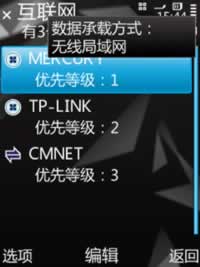 接入点创建成功后再进入承载方式-互联网里面找到刚才建立的接入点选编辑,WLAN名称、主页地址根据需要随便设定。(下图)