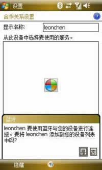 打开开始 - 程序 - 打开 ActiveSync, 然后点击“菜单”选择“通过蓝牙连接”系统会提示“无法找到现有的与支持 ActiveSync.................. ”不要理会它点击“是”然后点击“设置”