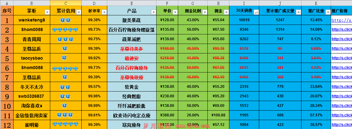 接着我们需要对这些产品一一进行数据分析,分析哪些减肥产品值得我们推广,哪些不值得。之前我在A5曾经有过一篇文章《淘宝客单品推广之产品如何选择》,有兴趣的朋友可以去搜搜。今天主要针对第二点进行部分补充,希望能给大家一点指引。