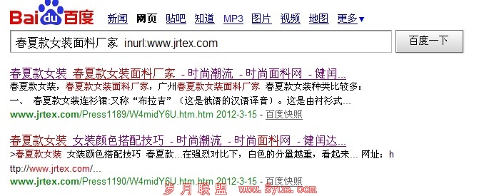 大家看上面的图片不知道发现了什么没有?搜索引擎会根据你网站最相关的内页进行排列。根据“关键词inurl:www.***.com”这个指令去查询,我们就能发掘出你网站关键词相关的一组文章。但你觉得要优化什么关键词的时候,你就可以通过以上的指令查找相关联的文章,然后进行内链的添加。有些人会问,这些内链是不是会马上生效。我可以很明确的告诉你不会。因为你搜索出来的文章有可能是已经发布很久的,只要在搜索引擎再也一次大更新的时候才能发挥作业。