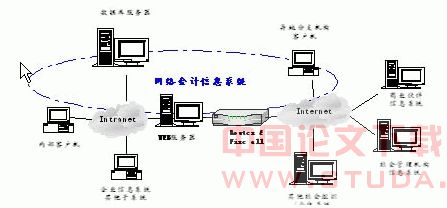 网络会计信息系统硬件上由后台数据库服务器、WWW服务器(应用服务器)、本地工作站、外地分支机构工作站四个部分组成,通过Internet/Intranet实现内外跨地域的互联互通。系统通过Intranet与企业内部其他职能的信息系统互联,以实现财务与业务的集成与协同;系统通过Internet与商业伙伴、社会管理机构的系统互联,以实现企业财务与对外业务的集成与协同。从网络图上我们可以看到,这是一个前所未有的复杂的联接结构。从软件结构上,系统必然采用B/S,也即三层的C/S结构。工作站端只需安装浏览器,就可通过访问会计信息系统的WEB服务器的网页界面,进行会计数据的处理工作,不受地理位置的任何影响。无论本地还是异地工作站,访问系统的方式与效率基本相同。