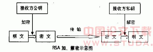 1.公开密钥加密体系。公开密钥加密的基本思想是:每个用户都分配两个密钥,一个是公开密钥,对其他用户都公开;另一个是私有密钥,仅为自己所有。经用户公开密钥加密的信息只能通过他的私有密钥来解密。反过来,经用户私有密钥加密的信息也只能通过他的公开密钥来解密。其中最有名的一种是RSA体制。他已被推荐为公开密钥数据加密的标准。其加、解密过程如图所示。