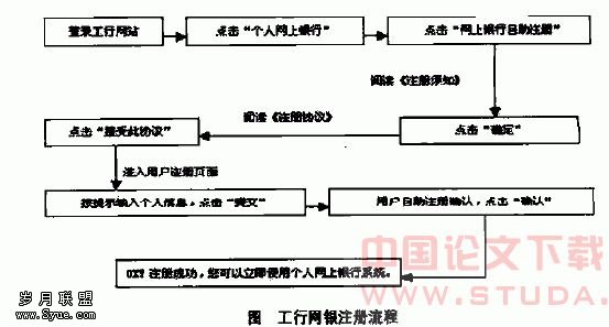 2.效率性。工行网上银行非常注重效率性,客户可以在第一时间得到最优质的服务。在使用工行个人网银时,一般情况下,不会出现网页打不开的问题,并且链接和证书的下载都准确无误。工行网上银行还实现便捷的网上银行注册(见图)和服务,其服务包括:(1)24小时的无限额任意转账、汇款;实时跨行支付;灵活、方便的各类缴费;(2)客户自己可以随时查询账户的余额、今日明细和明细等详细信息,查看某笔款项是否到账,还可打印出电子回单做为临时入账的凭证;即使是非银行工作日或者是非银行工作时间都可以进行账务对账和转账结算;(3)为个人用户提供基金业务、外汇买卖、B2C在线支付等方便实用的业务。真正为顾客服务到家,为客户节省了时间。此外,工行先进的网上银行系统和专业的客户服务人员能够在第一时间响应客户的多方面需求。同时,在线客户服务功能,可以实现专业服务人员的在线解答。客户可以通过输入文字与服务人员交流,也可以把电脑界面显示发送给服务人员,以便准确获得相关问题的解答。工行网上银行各操作界面都增加版面号,可以方便客户与工行服务人员的沟通。在操作界面中融合帮助信息,简化了客户寻找帮助信息的过程。