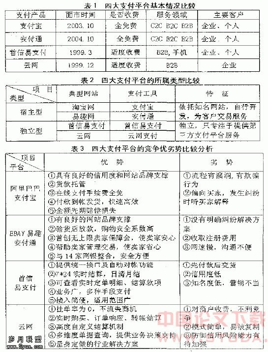 资料来源:根据四大电子支付平台的网站资料整理而来