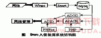 我们根据CIDF提出的通用模型的基础了,构建了基于Windows平台的Snort入侵检测系统,系统结构如图所示。