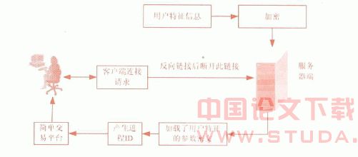 此方案加强了用户终端的安全性能,可以避免木马、病毒、系统漏洞、假冒网站等威胁。服务器反向链接所建立的简易操作平台应实现的功能:一是对用户透明结合了用户特征的加密过程;二是在用户终端,随机建立进程ID,防止病毒或木马对指定进程的分析和攻击;三是拒绝其他进程(除服务所需要)对其进行数据修改等操作。