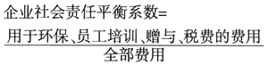 具体到公司的资产和资本信息上讲,公司透明度模式要求公司与环境处于协调的关系下。首先是资产,包含人力资源,它们存在于有形的物质空间、社会中。作为企业生态系统的一部分,有其对应的社会责任会计。企业要想获得持续的空间与能量,必须慎重考虑其与外部生态环境之间“给”和“取”的平衡关系。企业实现自身价值,内因与外因同样重要,单纯地强调哪一方面都有失偏颇。内部做得再精细,而与外部环境失衡了,企业也将失去存在的意义及不断创新的动力。在社会责任会计中,如何充分反映这种企业伦理价值,建设最广泛意义下的循环经济呢?下面是企业社会责任平衡系数的一个定义: