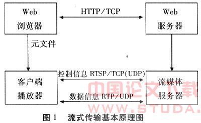 流媒体技术是支持电子商务信息流式发布的主要技术。为了保证媒体在网络上流式传输的网络服务质量(QoS)及其实时性,互联网工程任务组(IETF,Interne!Engineering Task Force)陆续提出了一系列网络传输控制协议,如RTP、RTCP、RSVPt、RTSP和SDP等。其中,RTP、RTCP、RTSP工作在网络的应用层,RSVP工作在网络的传输层。它们协同工作,在很大程度上满足了媒体数据的流式传输要求。目前,提供流式传输技术的主要解决方案的厂商是Microsoft、RealNetworks、Apple,相应的产品是Windows Media、Real Media、QuickTime。