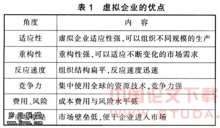 2、电子商务使中小企业发展国际贸易成为可能。(1)电子商务有利于中小企业发挥其产品优势。在传统的大规模生产、大规模营销的环境下,人们趋向于以最低的价格购买标准化的产品,这往往使具有规模优势、大批量生产能力的大企业,具有成本上的优势,从而在与中小企业的竞争中处于优势地位。而电子商务为顾客提供了直接面对厂商订购个性化产品的途径,顾客可以通过访问企业的网站,在线描述自己对产品的要求,大规模生产的模式转变为个性化的订制。对企业而言大规模生产的成本优势让位于个性化订制所要求的产品差异化优势。中小企业的组织结构相对灵活,信息在企业内部传递速度快,可以更加及时地对顾客的要求做出反应,生产出个性化产品,满足顾客需求。(2)中小企业与国际大型企业在国际市场上竞争成为可能。电子商务在创造了全新的企业信息传递方式的同时也创造了全新的企业组织方式——电子虚拟企业。虚拟企业利用通信手段与信息网络集中一批独立的中小公司的采购或销售权限,利用世界各地的劳动力为其进行生产,从而节约了大量的人工成本,使中小企业与国际大型企业在国际市场上竞争成为可能。虚拟企业具有一些传统企业所不具备的优点(见表1)。