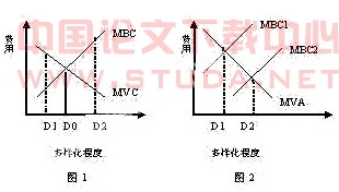另外,随着多样化程度的提高,所伴随的管理成本也升高。这种管理成本主要来自两个方面:①信息不准确或不及时所造成的损失。这是由于随着多样化程度的提高,企业业务数量增加,信息量也增加。企业管理人员不可能右足后的时间去处理涉及每一项战略经营单位及其相互关系的信息,也就是说,企业高层管理人员不可能掌握企业不同业务的全面状况。信息的不充分可能使企业高层管理人员在资源分配时做出错误的决策,使应得到资源而的经营单位得不到资源,想反应放弃的经营单位却得到了资源。②随着多样化程度的提高,协调和控制不同经营单位的费用也随之增加,尤其是当多个经营单位共享生产技术、实施、营销渠道等资源时,协调和控制更加复杂,费用更高。总之,随着多样化程度的提高,总边际管理成本(Marginal Bureaucratic Cost—MBC)趋向升高。如图1所示,MBC曲线是条正斜率曲线。