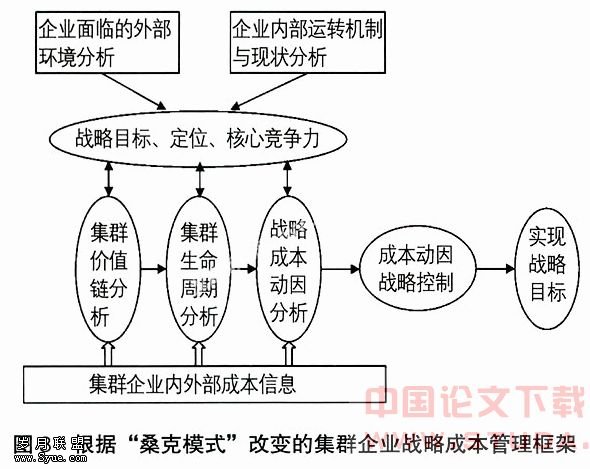 3、集群的社会关系网络和集群生命周期影响了企业战略定位,从而影响到企业的成本战略。(1)集群的社会关系网络导致企业不同的资源取得成本。从而会影响到企业在产业价值链中的战略定位。(2)动态演化中的集群具有生命周期,集群成长会给企业带来较多的投资机会和低成本优势,集群衰退也会影响企业的发展。在集群的不同发展时期,集群规模、价值链完整程度及整合优势各不相同,会对企业战略定位和成本管理产生重大影响。 三、集群背景下的战略成本管理模式创新