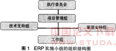 ERP的实施需要许多人的通力合作——软件经销商、外部的顾问、内部的实施小组、终端操作人员以及公司的管理层。一个典型的实施小组的结构为:最顶端的是执行委员会(负责人是CIO或COO,或者是其他高层管理人员),而后依次是项目管理小组、技术支持小组和管理支持小组、工作组,最底端是普通员工。