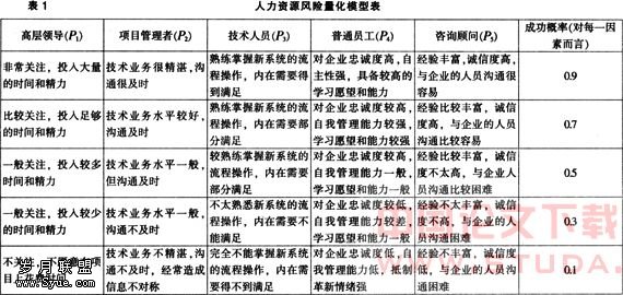 人力资源风险有其特殊性,即投机性、抽象性。如果企业的人力资源优势在新系统的实施过程中得不到发挥,企业内部人心涣散,不能形成有凝聚力和创造性的文化氛围,必然会导致企业生产、经营的各个环节出现漏洞,严重阻碍企业总体目标的实现,从而不能完成组织内部结构调整和管理变革。