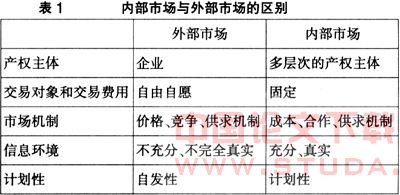 可以从以下几个方面看出内部市场与外部市场的不同之处: