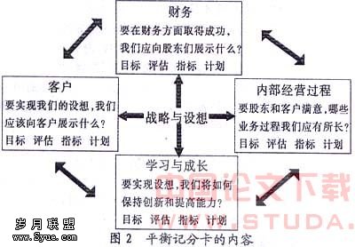 平衡计分卡(Balanced Score card,简称BSC),又叫综合记分卡,是一个核心的管理体系,一个崭新的绩效衡量模式。平衡积分卡体现了以下两个方面的一种管理思想:(1)只有量化的指标才是可以考核的,必须将要考核的指标进行量化。(2)组织目标的达成要考核多方面的指标,而不仅仅是财务要素,还应该包括客户的、内部效率的和未来成长性的指标。通过四个层面:财务、顾客、内部运作流程及员工学习能力来实施策略管理,这四个方面分别用一系列的指标来描述,各个指标与企业的信息系统集成,四个方面的指标通过因果关系联系,构成一个完成的评价考核的整体。