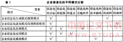 [摘 要] 信息化模式是企业开展信息化的方式,反映企业所选择的信息化要素的不同组合。本文对现有企业信息化模式的概念和意义进行了讨论比较,旨在揭示企业信息化不同模式之间的关系。