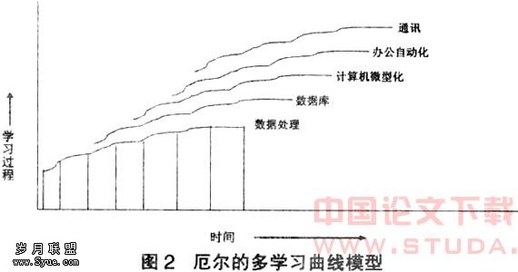 厄尔通过对组织各成长阶段的成熟度进行研究,提出企业信息化不同成长阶段适用不同的技术,并且存在着学习效应。如图2所示的S曲线代表新技术发展的周期,随着时间和认识的突然提升可以把曲线拉向一个新的平台;进一步发展、改进的过程和更高的平台是永恒的趋势。这一模型适用于各种技术,描述了组织学习过程、技术和时间之间的关系,主要关注的是每一阶段的规划任务与目标。随着组织沿着学习曲线发展,规划的目标也随之改变。企业高层管理者认识到把信息系统的发展同业务目标关联的必要性,从而在规划过程中担任着重要角色。