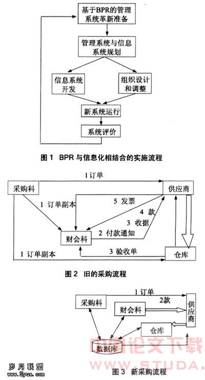 图2、图3是某企业采购部门借助信息技术流程重组前后的示意图。通过流程的重新设计缩短了流程,简化了工作,提高了效率,顾客满意度得到显著提升。