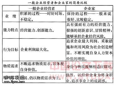 通常认为,一般企业经营者是有一定专业知识与技术背景,在企业里担任管理职务,承担合理组织、配置企业内部资源,使其创造价值并获取最大利润的管理责任人。而企业家则是指以经营管理为职业,有广博的知识、丰富的实践经验,有远见、胆量和组织能力,以创新为其核心职能,通过追求企业利润最大化来增加社会财富,并不断实现自身人力资本价值的增值,是企业的创新经营者和风险承担者。可见,企业家是由一般的企业经营管理者成长起来的。当然,这个成长演化过程是相当复杂而漫长的。首先,作为一般经营者需要在角色和能力方面进行自我定位———在角色方面,经营者需要了解自己在企业中所扮演的角色,是普通的经营管理者,还是“职业经理人”,亦或是企业家?在能力方面,经营者需要清楚自己在企业中真正起到的作用,是单纯地组织生产,还是积极制定战略发现市场机遇,或者是不断地进行各方面的创新,承担起企业生存和的全部责任?其次,企业经营者还要在实践中不断学习以提高自己的综合素质,尤其是人格素质,因为企业家需要具有很强的创新意识和冒险精神,并且还要有战略的眼光、注重信誉等。最后,我们的社会还要创造一个有利于企业家形成的外部环境,包括企业家的选拔、激励与约束、评价机制以及企业家的职业化和市场化等。