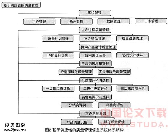 基于供应链的质量管理信息系统为供应链的核心企业提供了一个信息系统平台,使得异地分布的供应链上的所有企业能够快速、地部署质量管理信息系统,实现质量管理信息的协同、质量控制的协同和产品设计的协同,真正实现基于供应链的质量管理。