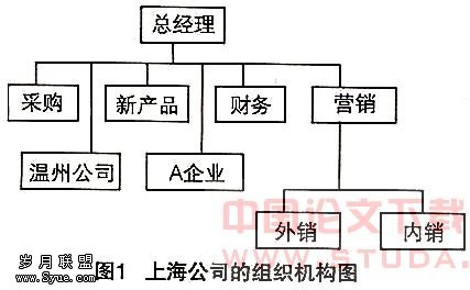 1.建立独立核算的总公司。在上海建立独立的总公司,负责A企业和温州公司两家企业所有产品的营销,研发以及原材料的采购事项,A企业和温州公司相等于上海总部的两个生产基地。上海总部的组织架构如图1所示。