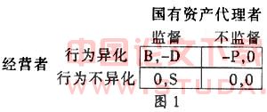 (1)经营者行为不异化,且国有资产代理者不监督。此时国有资产代理者的得益正效用为S(因为国有资产代理者可以利用不监督的时间、精力从事与本职工作无关的事情而获利为S,并且S>O);而经营者人员得益为O,(因为他们除了获得合法收入以外,没有获得其他非法收入,因此其额外得益为O)。