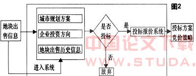 立足我国目前房地产业现状,对开发企业而言,首先应建立健全地块分析系统、开发风险预测系统、市场分析系统、项目定位系统、项目推广系统、客户关系管理系统等,利用数据库的优势对信息进行归类、管理。如地块分析系统,主要解决从角度评价地块的问题,了解规划出售地块的信息,进行充分的经济分析与评价,从而帮助开发商进行地块的决策。该系统可以有城市规划方案、地块出售信息、地块出售信息分析、投标报价系统等动态数据库组成,其系统结构如图2所示。