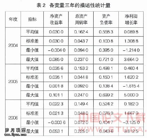 本文以2004—2006年作为科技型与非科技型企业收益质量评价的考核年度,以6种类型的企业为样本,根据这三年的财务报告,得到各变量三年的描述性统计量(见表2)。
