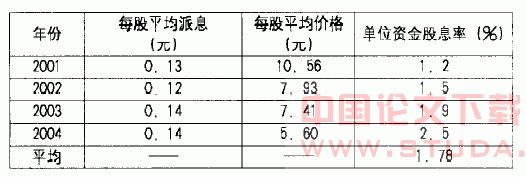 下面我们统计出2001~2004年上海证券交易所A股的分红派息数据,得出2001年~2004年的平均股息率为1.78%。(见表6)