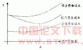 随着负债比例的增加,当资产负债率到A时,企业加权平均资金成本也相应地达到最低,这时企业的市场价值最大。在股东可承受的企业投资风险范围内,增加一定数量的负债有助于降低企业的资金成本,由于企业资金成本降低所带来的收益几乎全部归股东所有,从而使企业的市场价值不断增加,因此,企业负债的供给获得了增长的动力。另外,债权人获得的收益固定且稳定,所以债权人的投资风险也相对较小,从而使负债的利率低于股东的股利的状况能为债权投资者所接受。这就为企业寻求最低资金成本,选择最优资金结构提供了客观的资金市场环境和条件。