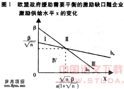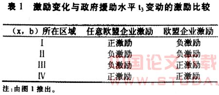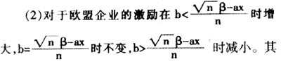 (1)对任意欧盟企业的激励,政府援助使b<β—ax时,激励增大,b=β-ax时不变,b>β—ax时减小;