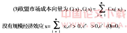(1)假设在欧盟统一大市场中有n家企业,这n家企业的行动向量x(x1,…,xn)∈Rn,市场可显示的产量向量为y(y1,…,yn)∈Rn,市场中第i家企业的产量水平yi可以表示为: