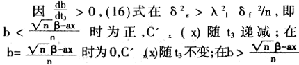 时为负,Cˊx(x)随t3递减。同理求(15)式关于t3的导数,政府援助使b<β-ax时,激励增大,b<β-ax