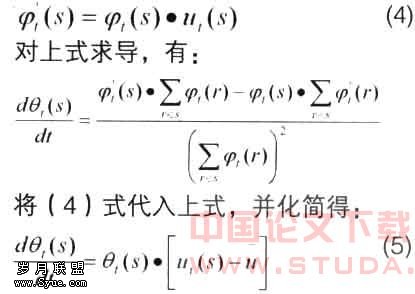 根据前面的假设,有限理性的行为主体有一定的统计分析能力和对不同策略收益的事后判断能力, 收益较差的行为人迟早会发现这种差异,并开始学习模仿另一类行为人, 因此行为人的比例是随时间而变化的,是时间的函数。上述比例随时间变化的速度取决于行为主体的学习模仿速度。学习模仿速度取决于两个因素: 一是模仿对象数量的大小(可用相应类型的行为人的比例表示),因为这关系到观察和模仿的难易程度;二是模仿对象的成功程度(可用模仿对象的策略收益超过平均收益的幅度表示),因为这关系到判断差异的难易程度和对模仿激励的大小。于是,有以下连续时间的动态模型: