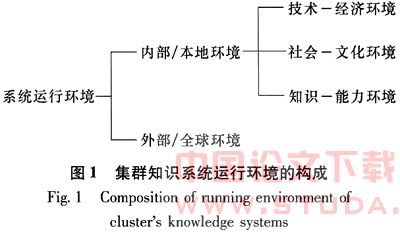 综上所述,影响集群知识系统运行绩效的内部(或本地)环境主要由集群内部(或本地)的技术一经济环境、社会一文化环境和知识一能力环境构成。Batheh等将这种地方环境形象地称之为“本地蜂鸣”(local buzz)。套用野中与竹内提出的术语“巴”,也可以将这种地方环境称之为集群知识活动的“本地巴”。