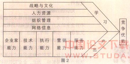 企业竞争优势的一个突出表现是企业的学习能力,学习能力是开拓新的竞争优势的根本。这是因为:企业的竞争优势来源于企业能力尤其是核心能力,而核心能力则表现为一些知识和技能,这些知识和技能只有通过不断的组织学习而得到更新,因此核心能力的培育和组织学习是不可分割的;核心能力的形成要经历企业内部独特资源、知识和技术的积累与整合的过程。通过这一系列有效积累与整合,使企业具备了独特的、持久的竞争力;通过有组织的学习使企业内个体和群体之间能够高效率地理解和交流知识, 使企业的个体能力向组织能力转化、最终形成核心能力,成功实现知识链与能力链的对接。
