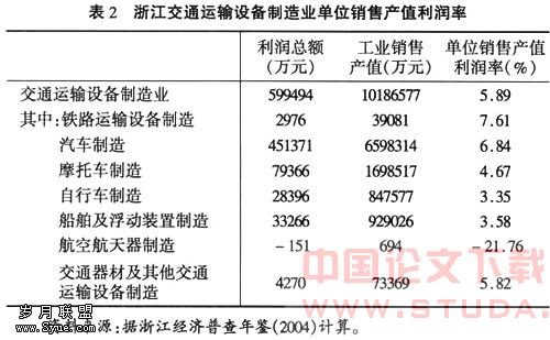 从表2明显可以看出,浙江交通运输设备制造业的盈利能力较弱,全行业单位销售产值利润率仅有5.89%,铁路运输设备制造和汽车制造的单位销售产值利润率稍高,分别为7.61%和6.84%,而摩托车制造和自行车制造等的单位销售利润率还不到5%,航空航天器制造则为亏损。造成这种局面很大的一个原因在于产业内竞争过度。浙江交通运输设备制造企业多数为民营企业,这些民营企业家通常“宁为鸡头,不为凤尾”,竞争意识强而合作精神则较弱,行业内大多数企业规模有限,强强合并非常困难,竞争异常激烈。产业内的过度竞争致使市场秩序混乱,多数企业利润很低甚至亏损。