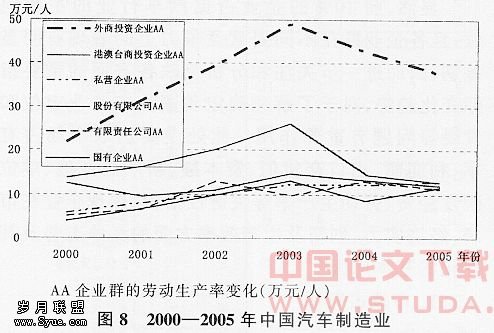 随着大众、宝马、福特、沃尔沃、奔驰、三菱、、本田、丰田、雷诺、通用、菲亚特等世界各国知名品牌汽车企业,以及美国德尔福、伟世通、德国博世、日本电装等著名汽车零部件厂商纷纷来到国内投资生产,国内外汽车企业的合作得到了更为充分和良好的发展,可以说中国是汽车制造业企业竞争发展的世界舞台。如何分析中国企业参与国际竞争的水平和问题,以及外国企业在中国的国际竞争力表现,成为中国汽车制造业企业未来发展需要了解的一个重要视角。本文利用国家统计局的全国汽车制造业国有及规模以上非国有企业统计数据(2000—2005),从一种新视角入手,分企业类型,以外商投资企业的竞争力水平为国际竞争力标杆,对比其他内资型企业,展开中国汽车制造企业群的国际竞争力系统分析。