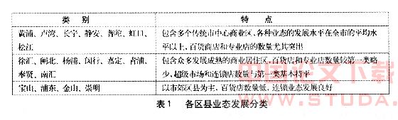 根据全市各区县业态分布数据,综合人均零售企业数和单位面积零售企业数,并采用重心法、最短距离法和类平均法的聚类分析结果,可以把19个区县大致分成如下三类: