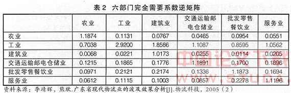 但从本文对现代流通业的感应度系数分析可以了解,物流业、批发零售餐饮业的感应度系数分别居广东省六大行业第二和第三,对经济发展的制约作用仅次于工业。同时也说明,现代流通业是广东省经济发展的瓶颈产业,其发展的滞后制约了工业的升级和改造。