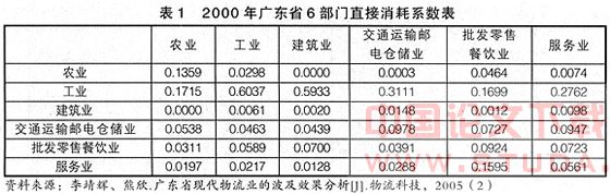 本文将运用产业关联分析的方法对广东现代流通业对制造业的影响力进行分析,深层次挖掘广东现代流通业与制造业发展不和谐的现实和深化改革的必要性。采用的数据主要来源于广东省统计局编的《广东省投入产出资料》(2000)。本文的价值指标为人民币。