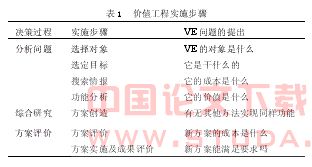 从定义可以看出,价值工程就是从分析价值、功能成本的关系入手,通过科学的分析研究而使产品具有个适当的功能水平,从而确保产品的寿命周期成本最,以达到产品功能与成本的最佳匹配。价值工程的分析步骤,如表 1.