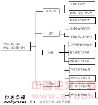 功能分析是价值工程的核心内容,它包括功能定义、功能分类、功能整理和功能评价。由前三个过程绘出功能系统图,然后进行功能评价。建筑业中要针对每一产品及过程的特点,形成功能分析的基本模式。将建筑设计作为VE的对象,功能系统图如图 1.