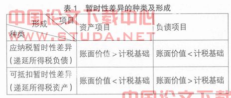 按照对未来期间应税金额的影响,暂时性差异分为应纳税暂时性差异和可抵扣暂时性差异,具体见表1。除了因资产或负债的账面价值与其计税基础不同产生的暂时性差异外,一些特殊项目也会产生暂时性差异,如:未作为资产、负债确认的项目产生的暂时性差异;可抵扣亏损及税款抵减产生的暂时性差异等。