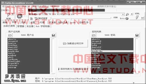 在这个分页卡中先选定“使用only字操作”,选中后会出现一个界面,这个界面主要是设置“字典”里面的用户和密码,查看用户和密码的宏,可以点击界面右边的导入用户和密码,如下图所示: