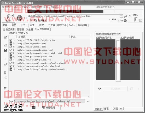 就可以吸附该网址中的用户名和密码,提取出来的用户名和密码可以加到字典里面。 图10 分页卡---WEB字吸附器图