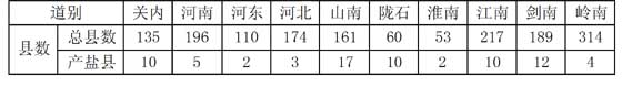 再看盐畦问题。根据《新唐书·地理志》、《元和郡县志》等史书记载,唐朝全国共有一千五百七十三县,产盐之县分布如下。