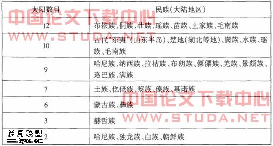 表一(大陆地区各民族神话传说中太阳的数目)