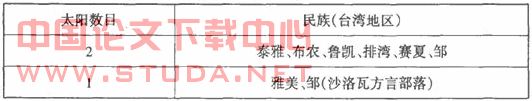 表二(台湾地区各原住民神话传说中太阳的数目)