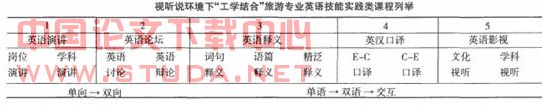 二、以设置和构建视听说环境下“工学结合”英语实训课程体系为龙头。创新服务旅游专业的英语技能类实践课程体系
